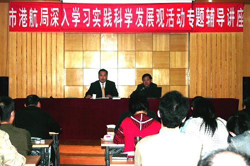 4月13日上午,宜昌市港航局举办了深入学习实践科学发展观活动辅导讲座。宜昌市委深入学习实践科学发展观领导小组办公室常务副主任、市委组织部副部长李柏红同志到会,并对全体干部职工作了深入学习实践科学发展观的辅导讲座。