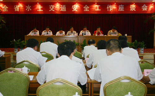 7月2日上午10时,在观摩2009年黄柏河水上搜救联合演习结束后,全省水上交通安全工作座谈会在宜昌召开。省交通运输厅副厅长张云、处长周峰、省港航海事局副局长王宪龙、副调研员罗进、处长张建、市交通局局长马宏彦、市港航局局长程家振及全省各地(市)州领导出席了会议。