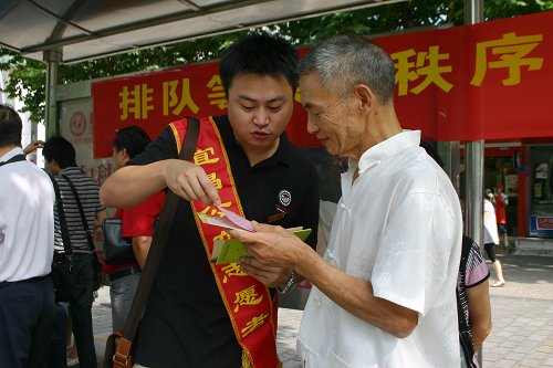 8月8日至9日,在市交通局统一部署下,宜昌市港航局青年志愿者利用双休日时间,走上街头,通过发放宣传资料、劝导排队乘车、劝导让座、维护乘车秩序等,积极参加到文明城市创建活动中,宣讲文明、倡树新风,用实际行动迎接国庆华诞60周年。