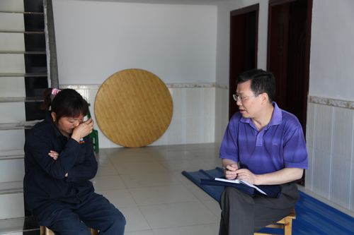 认真听取邓克先妻子的讲述后,纪委书记魏金哲指导同志驻队人员如何帮解决困难