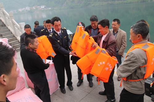 长阳土家族自治县清江水域面积广阔,全县服务于农业生产和农民生活的家庭农用船舶达到2600多艘,其安全管理一度成为比较棘手的问题。救生衣虽然小,但在关键时刻起大作用,县地方海事局首次在龙舟坪镇配发救生衣500件,今年将积极筹措资金为全县余下的6个有船乡镇近2000名农用船船主配发到位。给农用船船民免费发放救生衣活动是百校千村救生衣行动的重要一部分,既是配合清江画廊5A建设和落实“平安交通”创建活动的具体举措,也是为农用船保驾护航,为全县水上安全编制一张更加紧密的安全网。