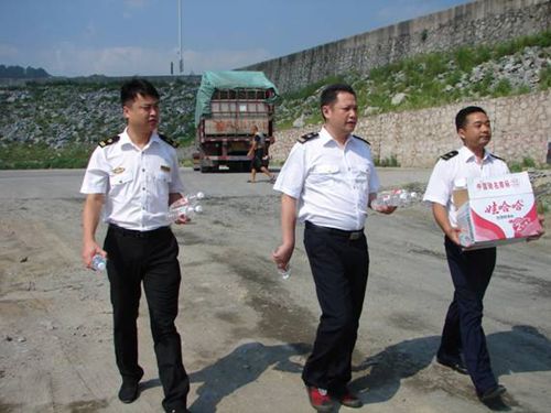 “你们做雷锋啊,免费送水真是太给力了,还是共产党好啊!”一名正顶着高温等候的司机真诚感谢地说道。也许只是一杯清凉的矿泉水,但在这炎炎夏日,对于开车累、出了大汗、口渴难耐的司机来说,就是甘露。