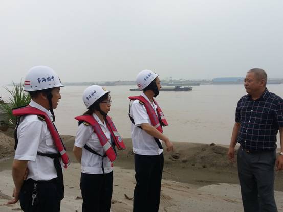 中午1点,胡局长一行来到白洋分局办公楼,对战斗在基层的港航管理人员表示诚挚的慰问,并认真听取了近期白洋分局辖区内的防汛抗洪、港口作业安全及非法码头专项治理等工作情况的汇报。1点20分抵达港口一线,实地检查指导防汛抗洪及港口安全工作,仔细询问业主码头的设计高程、何时设防、警戒水位是多少、何种情况下应停止港口作业等情况,听取了港口业主对防汛抗洪、码头经营状况的汇报。