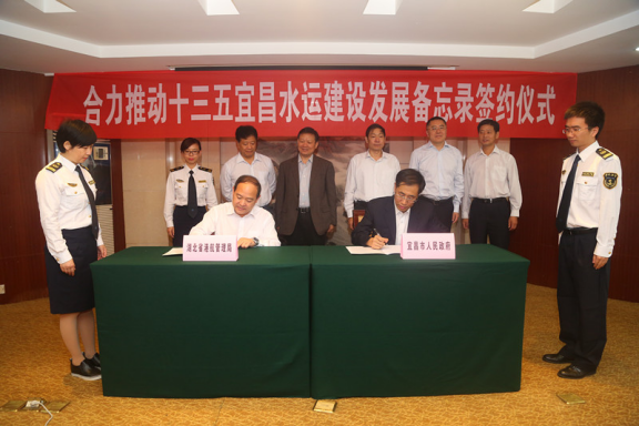 10月19日,上午8:30,市政府与省港航管理局签署《合力推动“十三五”宜昌水运建设发展备忘录》,将就30个项目展开合作,支持项目总投资达70亿元。武汉港航发展集团董事长谢宗孝、省港航管理局局长王阳红、副市长兰银、市交通运输局局长马宏彦、市港航管理局局长胡朝晖等出席签约仪式。