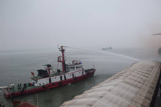 “瑞泰889在作业中发现船头有严重火情,请求救援!”白洋港工作人员在发现火情后立即进行扑救,但火势太大,随即发出救援请求。长航公安宜昌分局水上消防支队在接到警情后,立即派出“长公消1202”号消防艇迅速靠近失火船舶并展开消防灭火救援,长航宜都海事处派出“海巡12249”号海巡艇对对码头附近水域进行管控,对过往船只发布警告。在高压水枪的全力施救下,现场火势很快就得以控制并被扑灭。