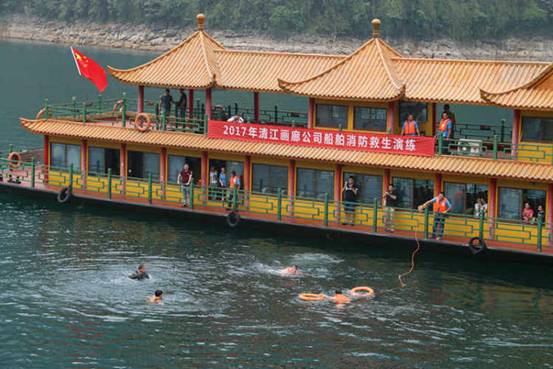 10点41分,演练现场总指挥宣布2017年清江画廊公司船舶消防救生演练全部结束。