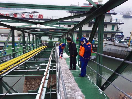 四是现场管控,严防盯守“早落实”。采取现场巡查与北斗、进出港报告系统动态监控双管齐下,严格执行渡口渡船“七项禁止”、“八不开航”规定,对渡口渡船每天巡查,对进出港报告制度落实、防冻防滑物资储备,人员应急值班值守、恶劣天气应急预案落实等情况进行查看,做到管控直通现场,巡查留印有痕。