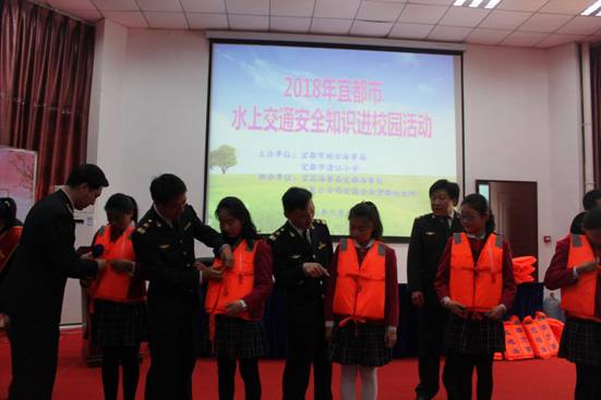 宜都市清江小学活动分为捐赠小学生水上交通安全教育读本,救生衣穿戴教学,水上交通安全知识问答,溺水人员救助演示,水上交通安全出行宣誓,水上交通安全出行签名等,同学们踊跃参与,现场气氛非常热烈。
