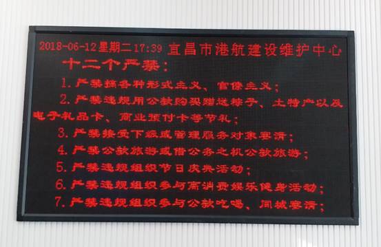 在中心大厅电子显示屏重申“十二个严禁”纪律要求,对干部职工早打招呼、早作提醒、早敲警钟,知行止,明畏惧。