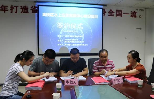 近日,夷陵区水上应急救援中心在长信建设有限公司举行签约仪式,标志着夷陵区水上应急救援中心即将开工建设。区交通运输局局长陈立、副局长孙朝刚、发包方区港航管理局局长章烈伦、承包方、监理方代表等参加签约仪式。