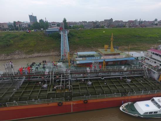 6月20日,枝江市港航管理局联合中石化湖北化肥分公司在省化危化码头开展了乙二醇充装泄漏着火实操应急演练。枝江市交通运输局、枝江海事处、长航公安和市安监局等单位进行了现场观摩。
