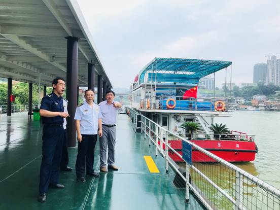 在交运集团黄柏河客运码头,梅常春登上宜昌港K07趸船和长江三峡7号游船,向交运集团相关负责人和船员了解了旅客实名制、防汛备汛等措施落实情况,叮嘱他们要时刻保持戒备,严格落实各级防汛指令,确保游客生命财产安全。