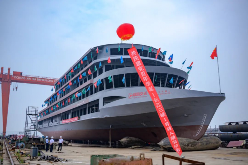 从宜昌交运集团获悉,2021年6月30日,“长江三峡1”号游轮在湖北宜昌枝江鑫汇船厂万吨级船台完成船体建造,成功转入舾装阶段,标志着我市交通强国纯电动游船试点项目取得突破性进展,为年底前顺利试航奠定了基础。