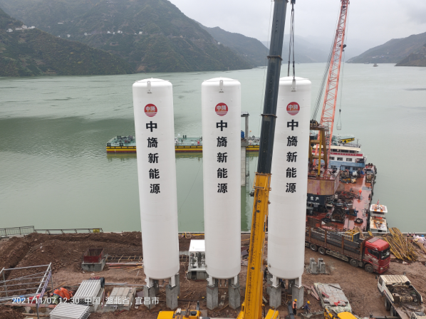 交通运输部试点示范项目、长江干线中上游地区首个LNG加注码头建设取得重大进展。11月7日下午5时,秭归LNG码头工程陆域工程3台150立方立式LNG储罐吊装完成,为项目年内建成投运奠定基础。