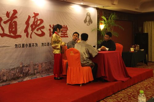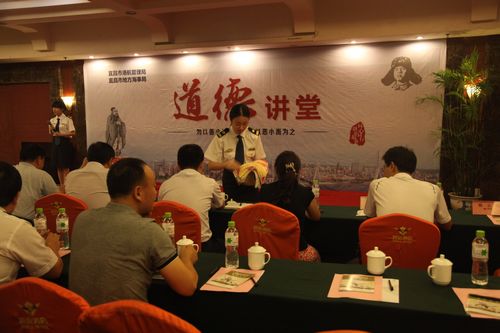 道德讲堂紧紧围绕“弘扬职业道德、树立新风正气”的主线,突出身边人、身边事,用核心价值体系引领新思潮。活动通过“唱歌曲、学模范、诵经典、谈感悟、送吉祥”五个基本环节,以主持人与嘉宾的点评、探讨为主线,以古圣先贤道德箴言的诵读点题,融合了音诗画、视频展示、演讲、情景剧等丰富的节目形式,讲述了全国交通运输系统劳模、宜昌市第二届“道德模范”覃北平同志的先进事迹,大力弘扬爱岗敬业、勇担责任、甘于奉献的精神。使“礼仪”、“诚信”、“和睦”、“友善”等美德与道德模范的动人事迹相得益彰。