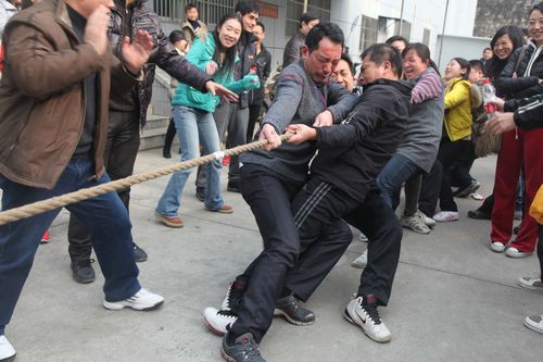 户外虽然寒风凛凛,场内却是一片热火朝天。“踢毽子团体赛”的紧张激烈,“螃蟹跑比赛”的幽默搞笑,“五人绑腿走”的同舟共济,“运篮球投篮接力”的团结协作,“拔河比赛”的势均力敌,运动员们个个热情高涨,观众们欢呼声、加油声此起彼伏。