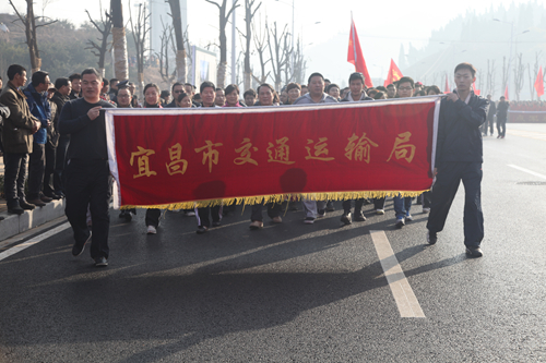 2013年12月31日上午,迎着冬日的暖阳,“圣丰杯”宜昌市第30届元旦健身长跑暨五龙大道竣工典礼活动在点军区五龙大道中心花坛拉开帷幕,我局干部职工组队参加了全市交通运输系统方阵。长跑队伍从五龙大道中心花坛出发,至市警示教育基地折返,全程约4000米。天气虽然寒冷,但丝毫没有抵挡港航健儿们的步伐,他们一路上口号响亮,队形整齐,始终保持着高昂的气势,成为长跑队伍中一道绚丽的风景。