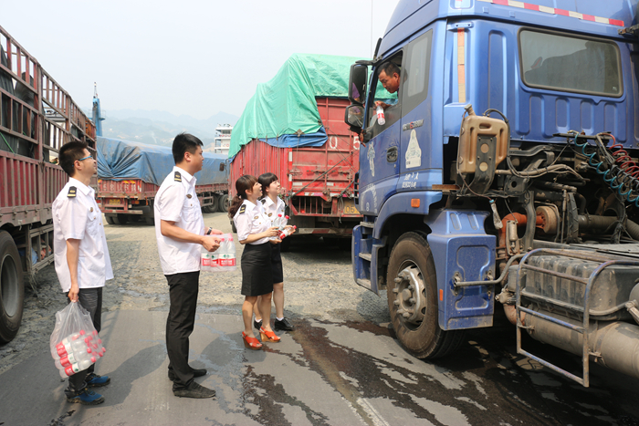 活动现场,我们向滚装港口作业区等候的司乘人员,调度指挥协调亭、安检监督亭、滚装船上的工作人员宣传夏季防暑降温小知识,并为他们送去矿泉水、清凉油等防暑降温物品,提醒司机勿疲劳驾驶,谨防爆胎,严禁携带打火机等易燃易爆物品上船,防止车辆出现自燃等情况,并叮嘱码头管理人员增强高温作业的劳动安全保护意识,确保大家安全度暑。