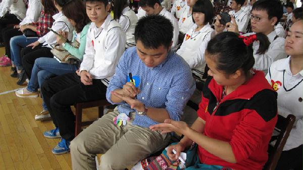 “他们生遭不幸,但是天真无暇的笑容却表明了他们积极的人生态度;尽管他们无法听到来自我们的祝福,但是那个手势就表明他们感受到了志愿者带给他们的心灵慰藉。”一位志愿者说道。