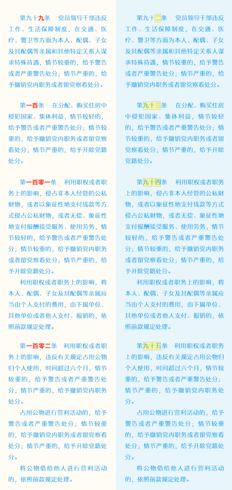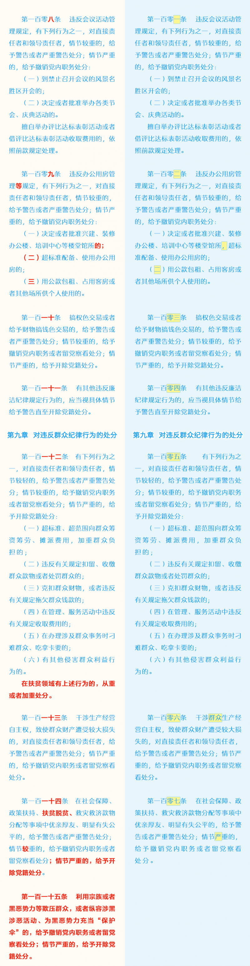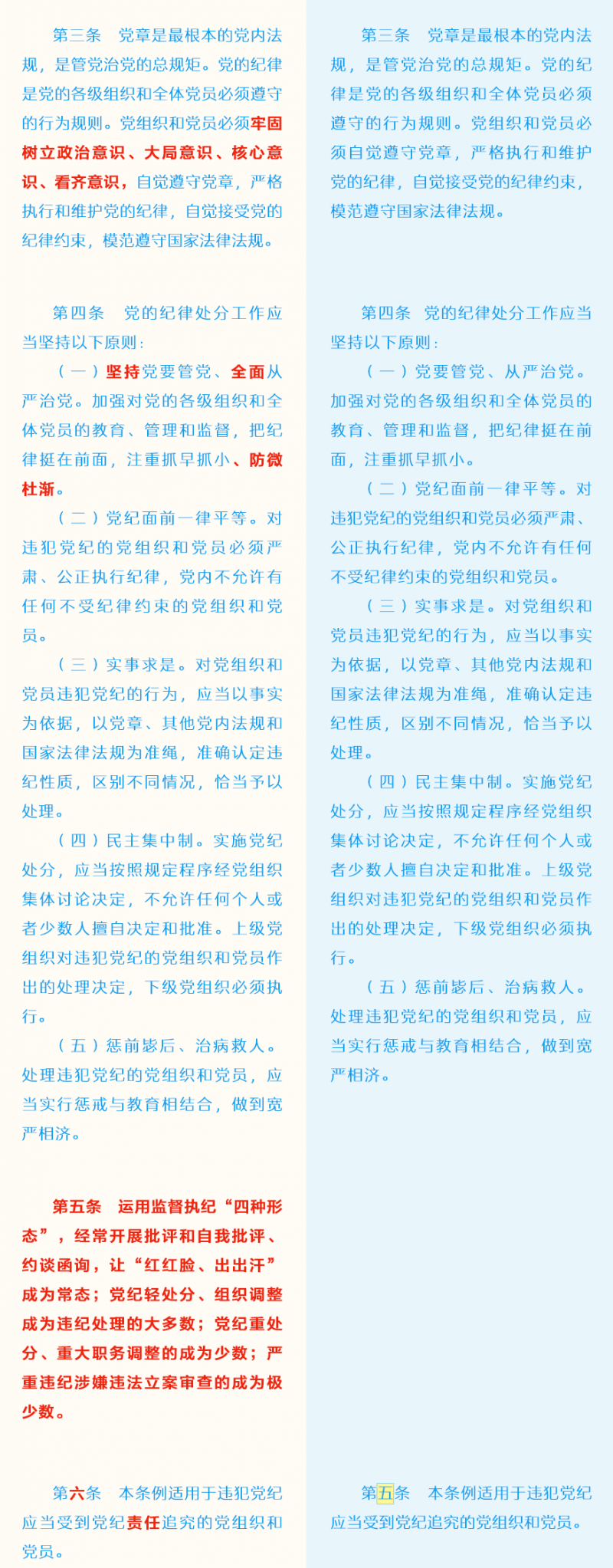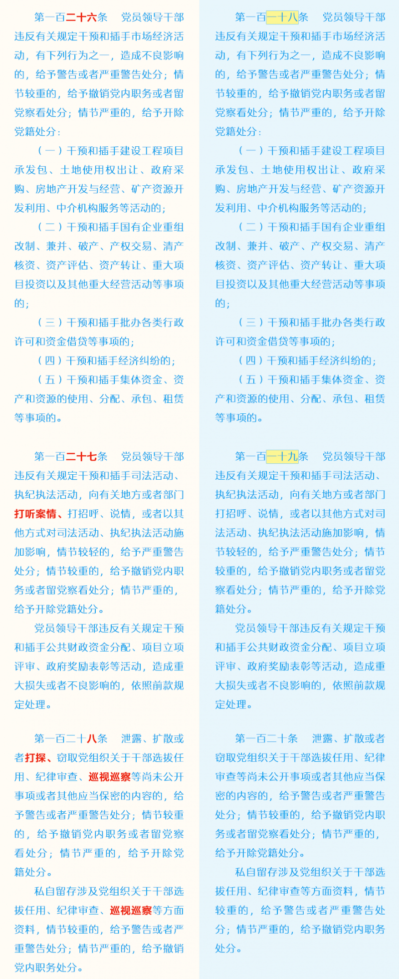 【廉政微讲堂第五讲】——《中国共产党纪律处分条例》修订前后对照表