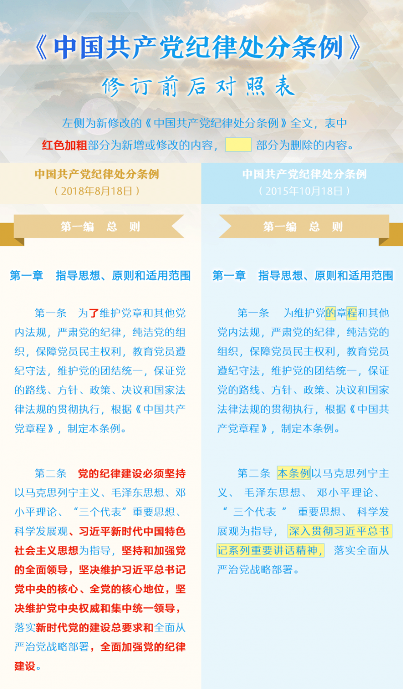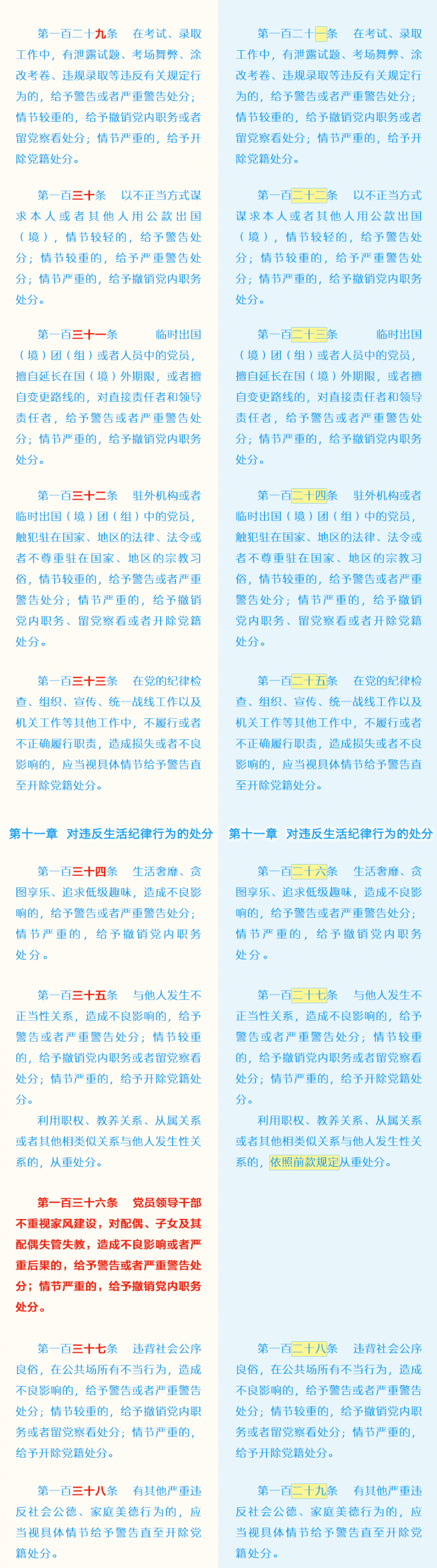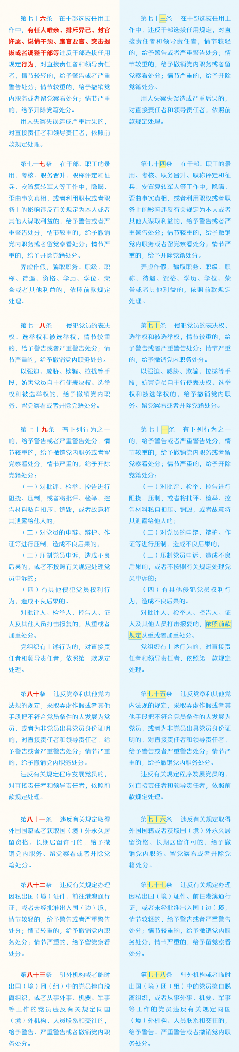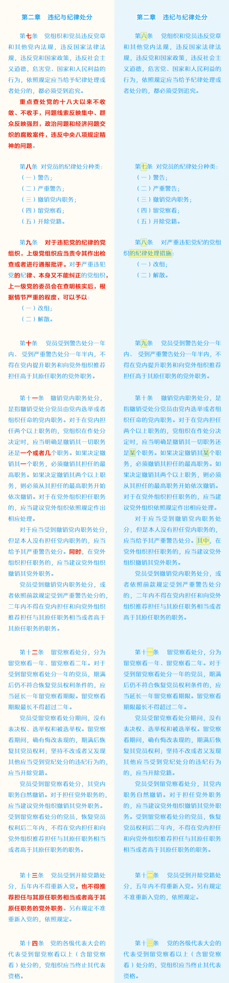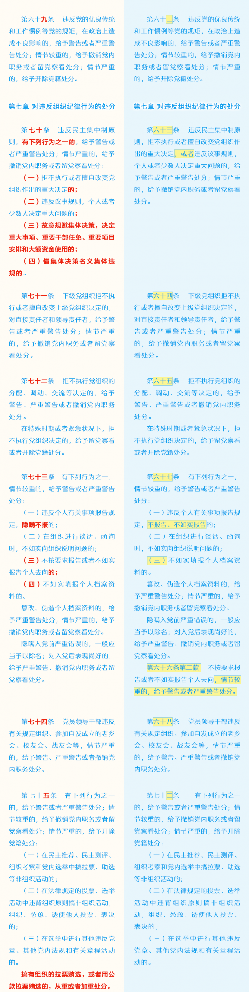 【廉政微讲堂第五讲】——《中国共产党纪律处分条例》修订前后对照表