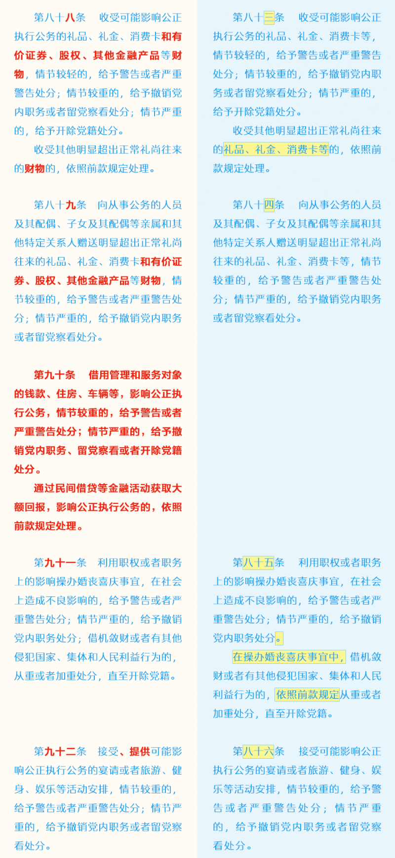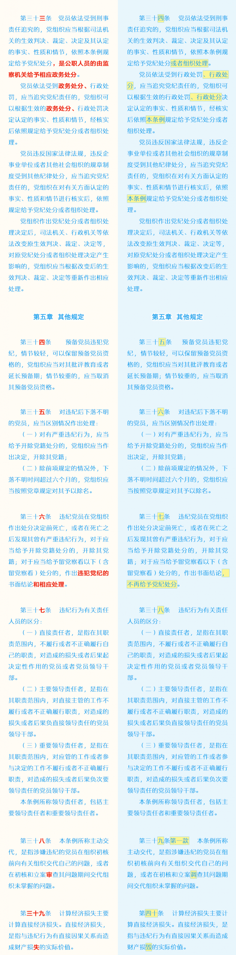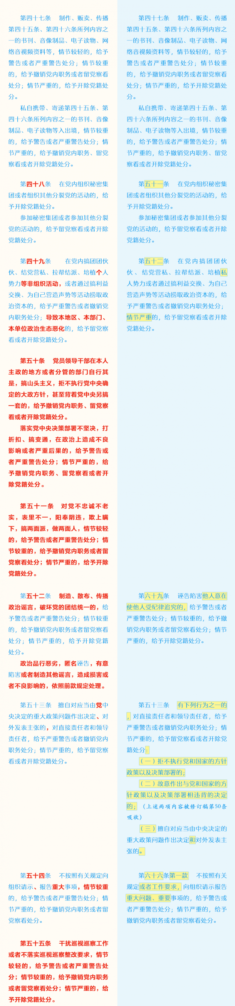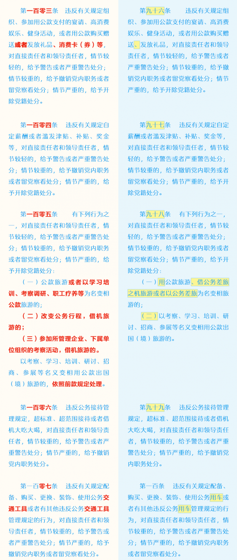 【廉政微讲堂第五讲】——《中国共产党纪律处分条例》修订前后对照表