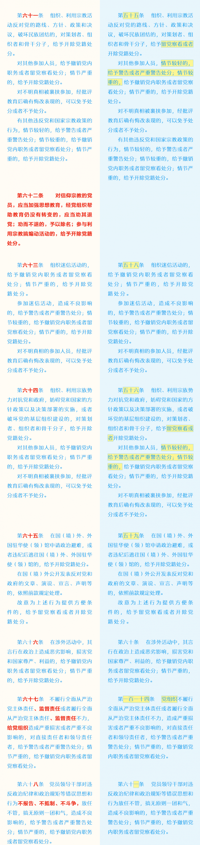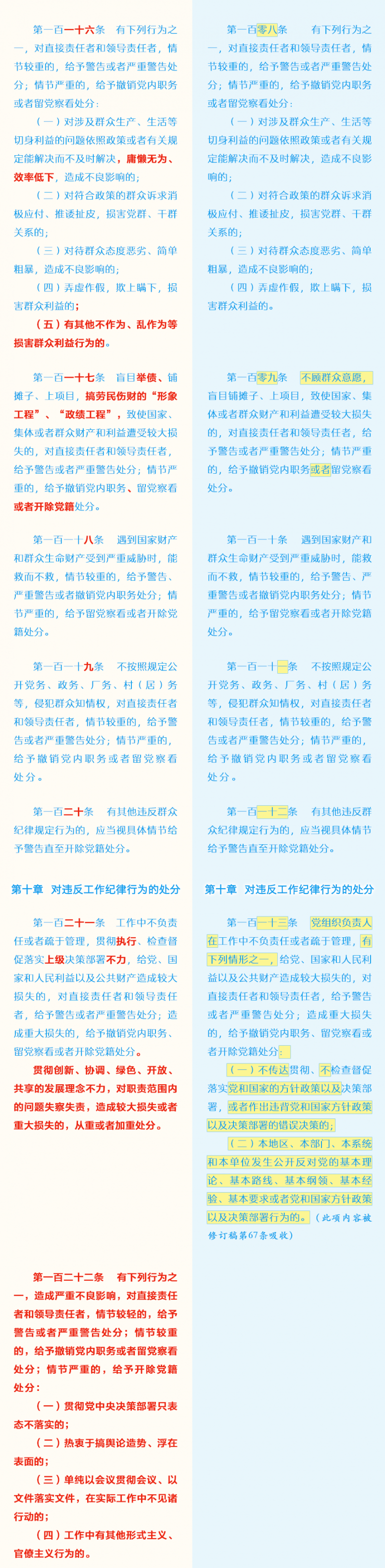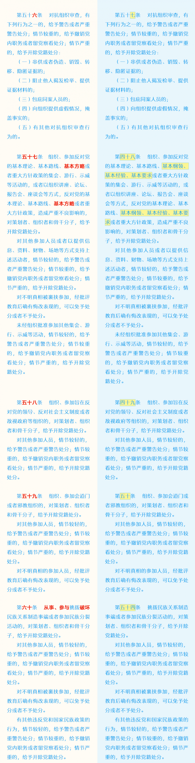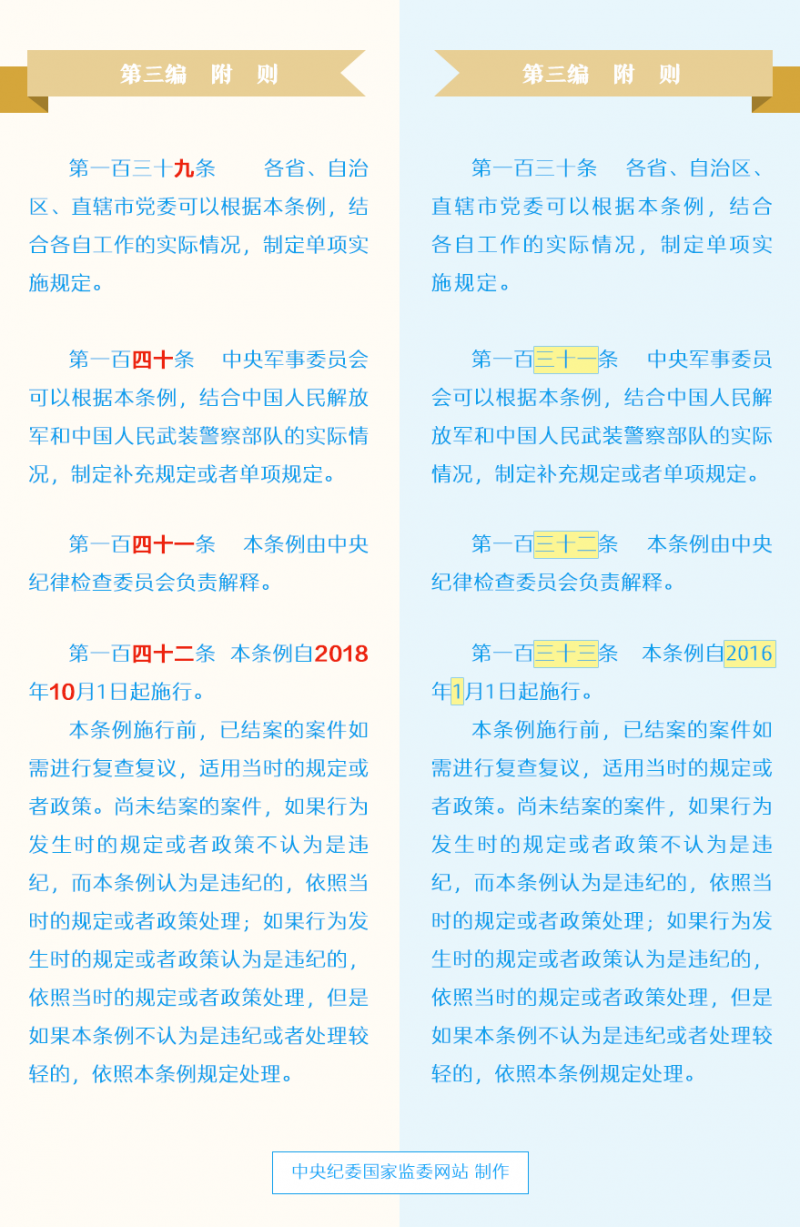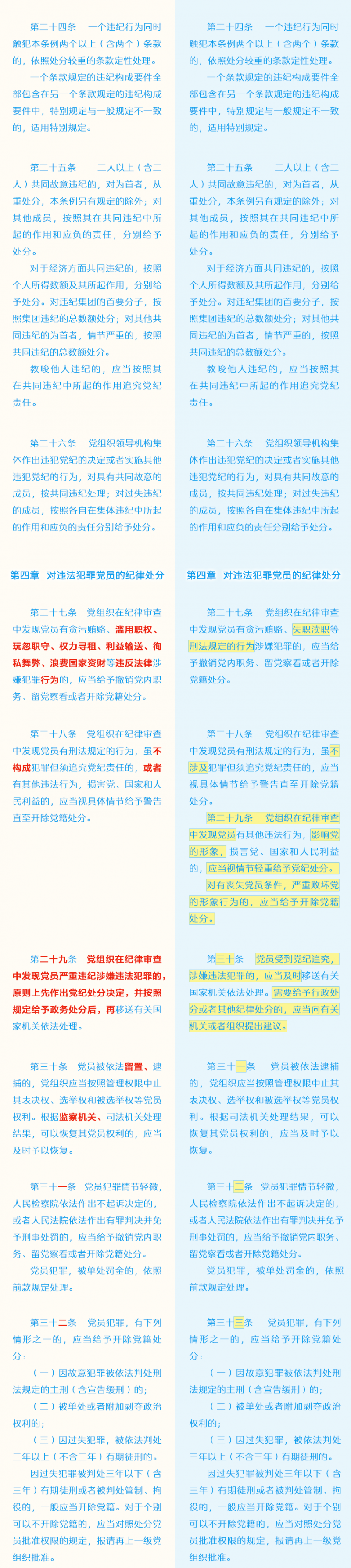 【廉政微讲堂第五讲】——《中国共产党纪律处分条例》修订前后对照表
